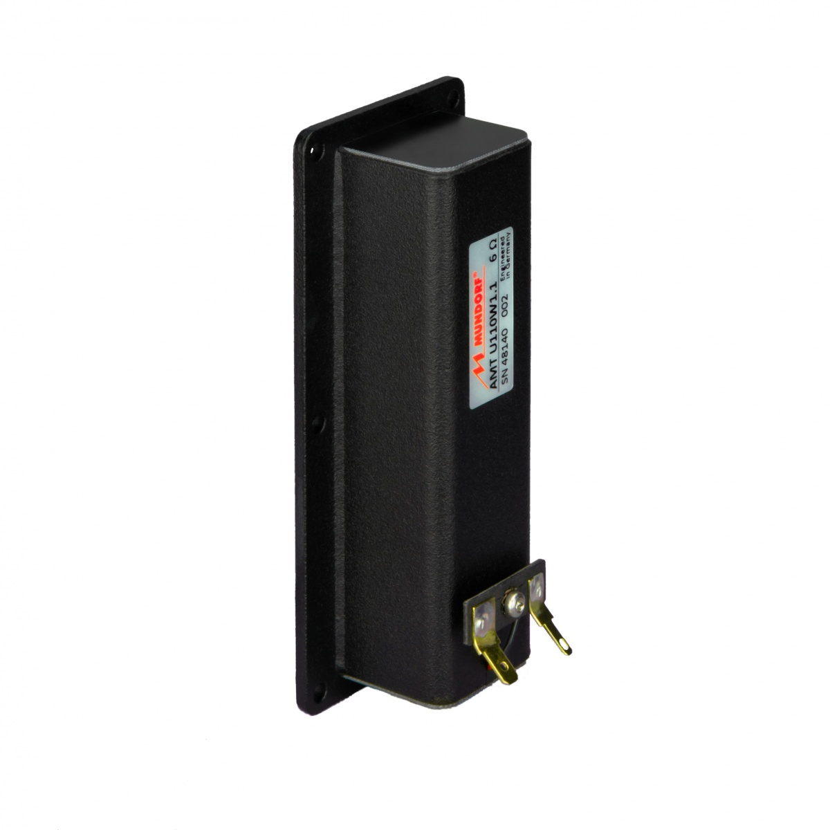 AMT U110W1.1 offers huge SPL reserves for large floor standing speakers with a low crossover frequency or for quite demanding home-theater speakers. It is predestined for applications where low ceiling or floor reflections might cause difficulties. Its SPL reserves, together with the decisive quality features of our AMT U.Series with Mundorf diaphragm, such as exceptionally low K3 / K5 distortion data, a truly powerful music performance within the entire application range and, at the same time, the fine micro-dynamics and richness of music details that distinguish all Mundorf AMTs, make AMT U110W1.1 always the first choice when a little more of everything is in demand.
